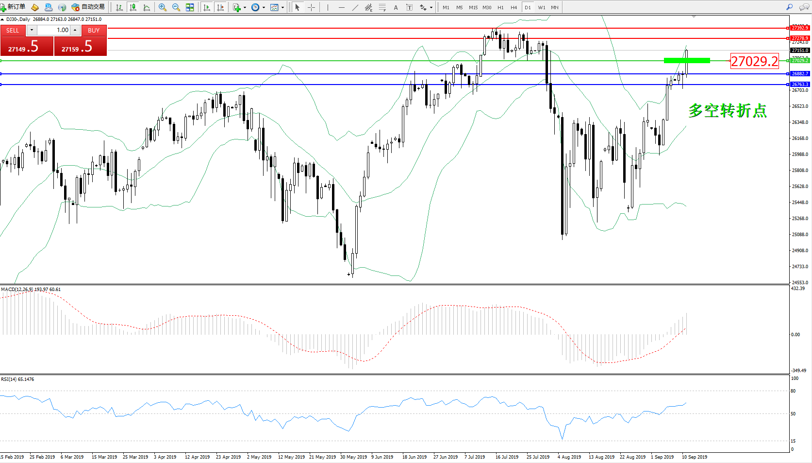 道琼斯指数911日(周三)收盘上涨227.60点,涨幅0.85%,报27137.04点。因市场预期主要央行将放松货币政策,而全球经济增长风险持续,尽管近期经济指标可能促使美联储降息25个基点,但TIAA Bank表示,没有必要大幅降息50个基点;贸易局势的进展及中国数据的好转也提振了全球股市,美国总统特朗普:美联储应该降息至零甚至负利率,美国应该开始为债务再融资,美国应该始终支付最低利率。