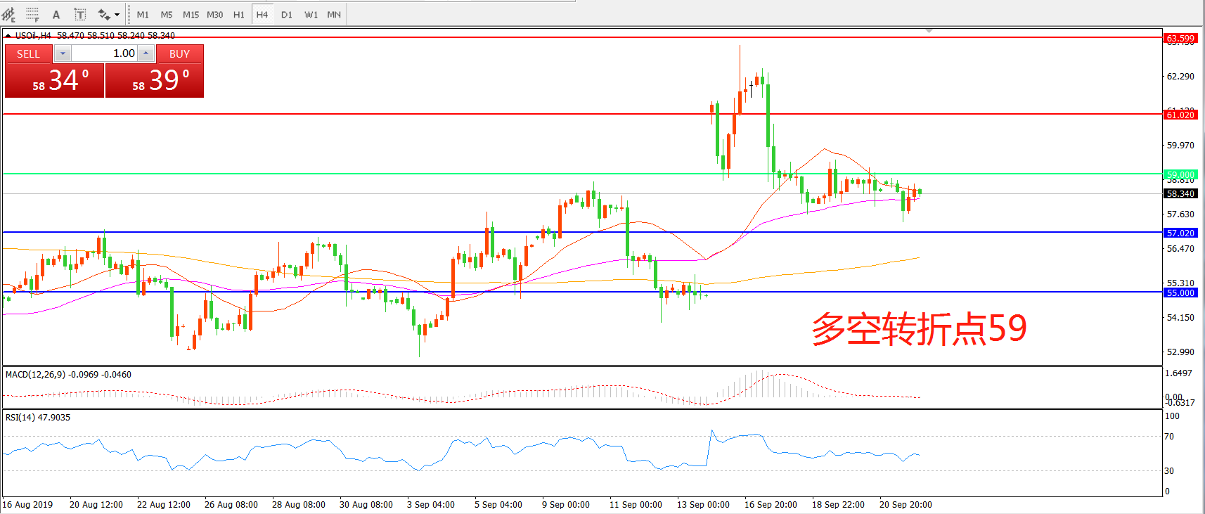 多空转折点:59.00