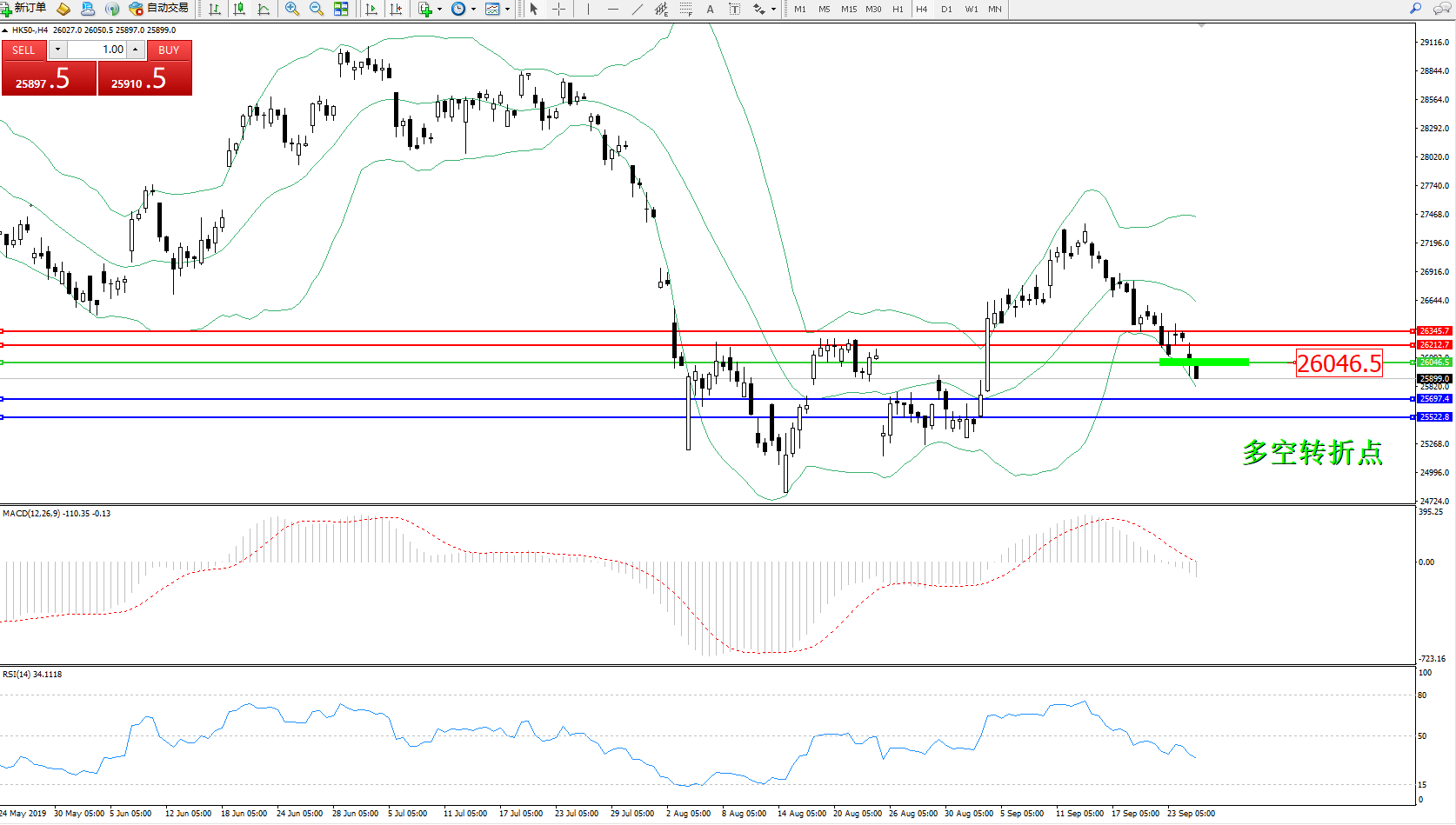 香港恒生指数925日(周三)收盘下跌335.65点,跌幅1.28%,报25945.35点;港股早上跟随外围低开118点,随后再逐步扩大跌幅,失守26000关口,低见25899。欧洲和日本制造业数据疲弱,美国经济数据整体表现不佳,经济衰退风险犹在,美国众议院启动弹効特朗普的调查程序,美国政治风险加大。恒指趋势已经形成,恐将继续下跌,即便反弹也会小小幅度。切莫在市场尚未到达极端的时候贸然出手。医药板块的机会自不必说。投资者也可以关注下未来国庆7天长假巨大客流带来的机会。