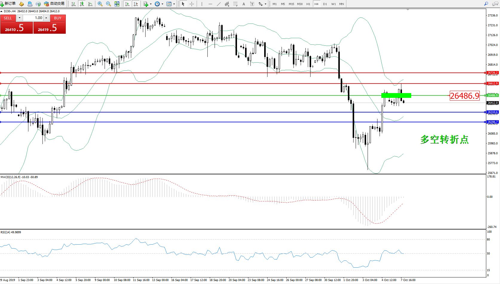 技术点评:低位震荡快速拉升上行后,及价格你触及布林带指标上轨后遇阻回撤,多头动力出现疲软走势,MACD指标空头区域缓慢上行至0轴线附近徘徊,RSI指标维持50均衡线上侧窄幅震荡;