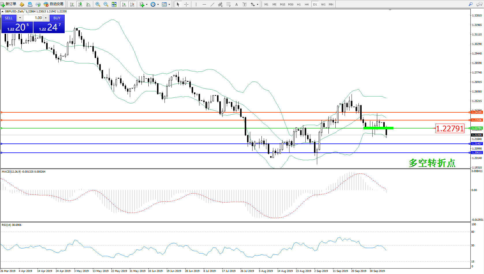 交易策略:1.22791下方看跌,目标1.21407、1.20615