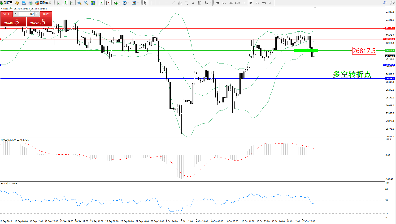 道琼斯指数10月18日(周五)收盘下跌255.70点,跌幅0.95%,报26770.20点。美股周五集体收跌,道琼斯指数收低,近三分之二的原因归咎于波音;微软等科技股不振,拖累纳斯达克综合指数。美中贸易谈判进展和美联储扩大资产负债表的影响有关。近期公布的多项美国经济数据表现低迷,路孚特数据显示,货币市场预期美联储在10月30日会议上降息的可能性为82%。美联储副主席克拉里达为连续第三次降息的可能性留下了空间,称美国经济增长前景良好,但在经济面临风险的情况下,美联储将“采取适当行动”支撑经济增长。