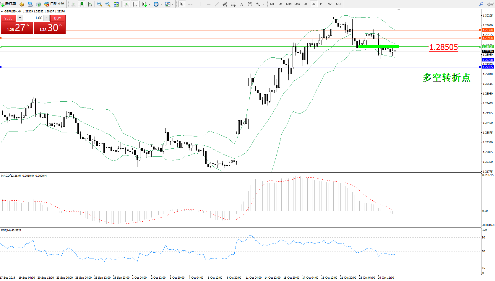 交易策略:1.28505下方看跌,目标1.27788、1.27405