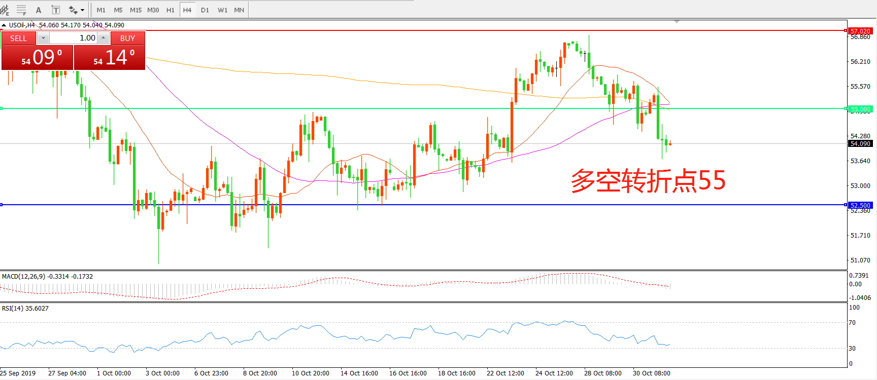 周四(10月31日),由于智利取消APEC会议,原定于在会议上由中美双方首脑签署的协议有可能会受到影响。且日内公布的美国数据也强差人意,贸易协议的不确定性以及经济数据表现疲软令原油需求前景堪忧, 美国WTI原油震荡收跌,最终收报54.08美元/桶.