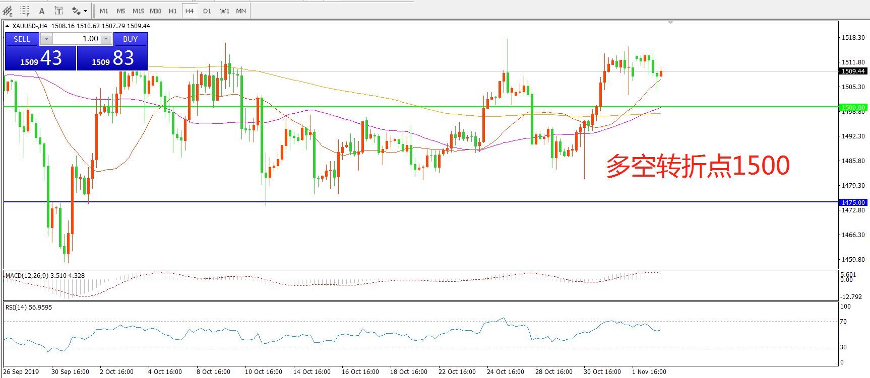 周一(11月4日),现货金价维持在1510美元附近震荡交投,本周初基本面消息较少,黄金市场利多和利空的消息均衡,就中长期而言,黄金上行还有空间,因为明年大选之前,美联储还可能试图以降息来推动美国经济增长,凌晨欧洲央行新任行长拉加德将发表上任后的第一次讲话,受到市场关注。由于全球总体宽松的货币政策,金价目前得到了很好的支撑。值得注意的是,拉加德正式接棒德拉基,出任第四任欧洲央行行长,这位63岁的法国人曾是法国第一任女性经济部长,国际货币基金组织第一任女总裁,现在又成为欧洲央行第一位女性行长。虽然欧洲央行的货币政策短期内不会转变,但拉加德的就任无疑会给欧洲央行乃至欧洲经济带来新的契机。