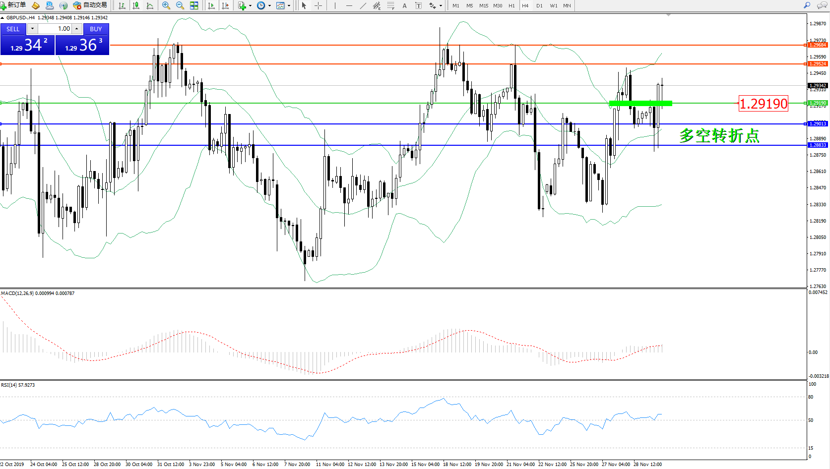 交易策略:1.29190上方看涨,目标1.295241.29684