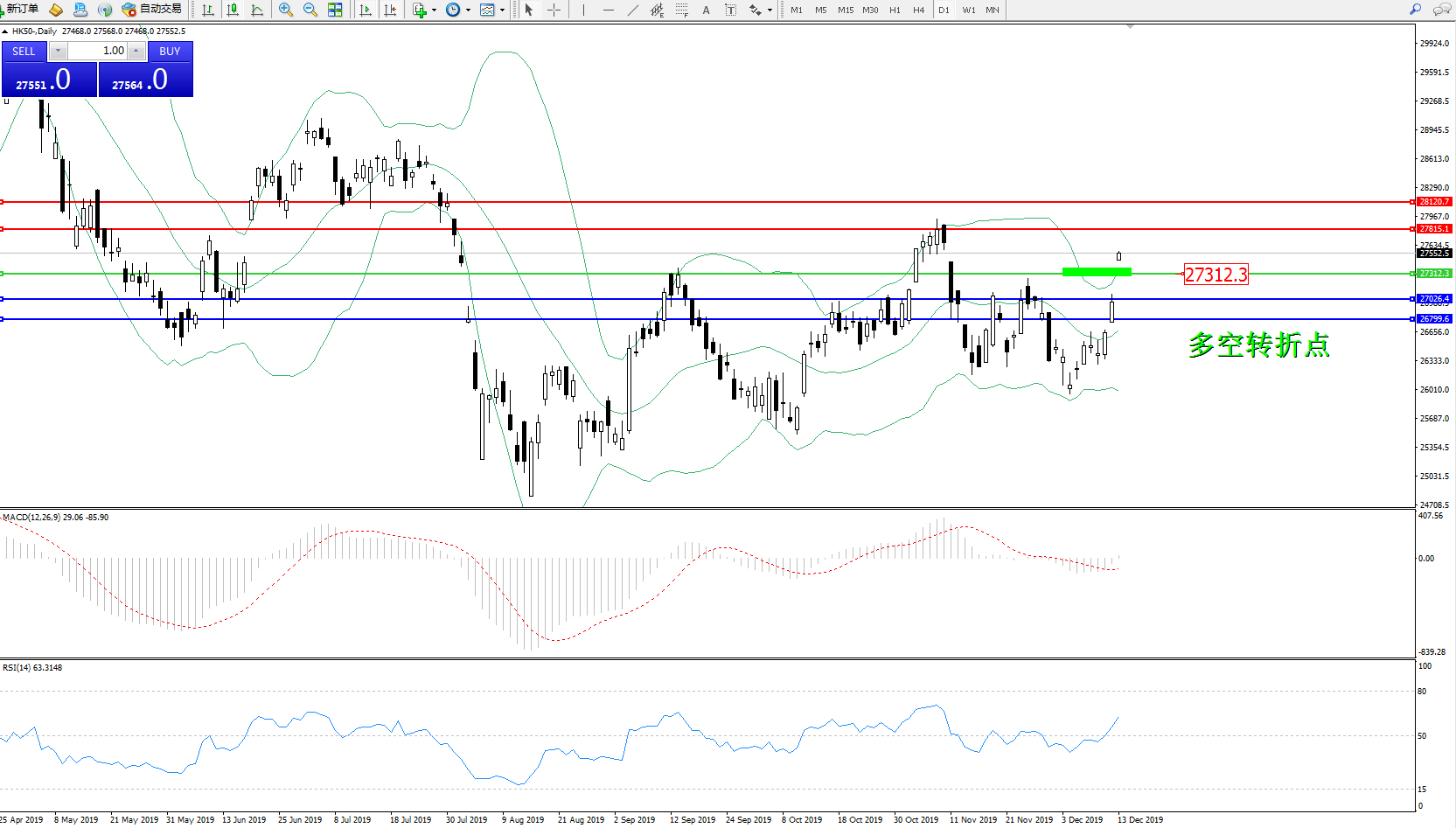 香港恒生指数1212日(周四)收盘上涨348.71点,涨幅1.31%,报26994.14点;港股恒生指数高开高走,逼近27000点。对港股战略看多,或迎缩小版“戴维斯双击”;行业配置关键词为“价值回归、成长分化”,建议布局低估值、“抗通胀”、“软服务”三条主线。美国总统特朗普发表的关税方面言论,提振了市场乐观情绪,资金流入股市。引爆了市场上的风险情绪,恒指跳空高开。