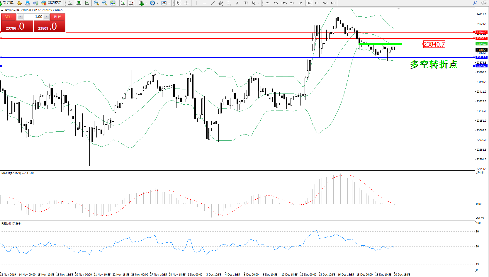 日经225指数12月20日(周五)收盘下跌36.35点,跌幅0.15%,报23828.50点。日本政府报告:制造商的疲态增长,日本政府12月下调经济评估,为年内第四次下调,下调对工业产出的评估,经济正在以温和的速度获得恢复,但由于出口衰弱导致制造业疲态增加,日本政府报告对经济的悲观预期可能给日本政府带来压力,并迫使其制定新措施以支持经济增长和要求日本央行维持其宽松的货币政策,日本十年期国债收益率重返正值区间,为2019年3月以来首次,日本财务省,日本央行和日本金融厅将于今日在东京会面,就全球市场情况进行讨论。
