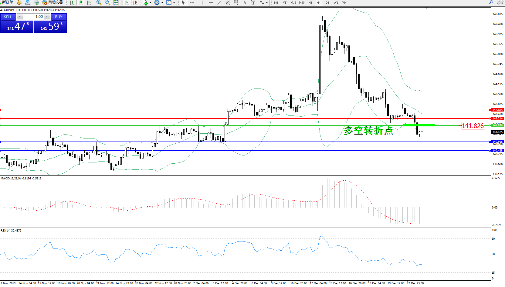 技术点评:高位空头下行态势良好,延续布林带指标中下轨区间不断震荡下移中,前期的阶梯式上行支撑正一步步向下破位中,且布林带指标呈张口走势,MACD指标处于空头区域低位弱势整理平移中,RSI指标处于空头区域持续震荡;