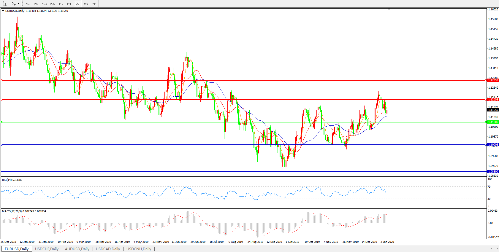 交易策略:1.1100上方看涨,目标1.1200、1.1285
