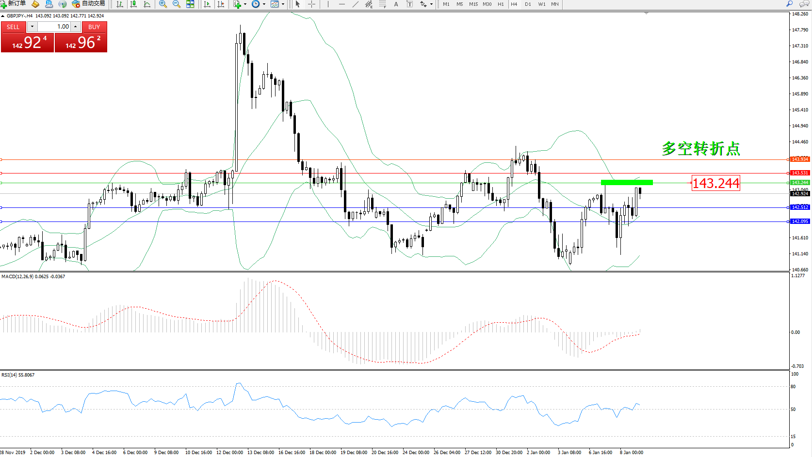 交易策略:143.244下方看跌,目标142.512、142.095