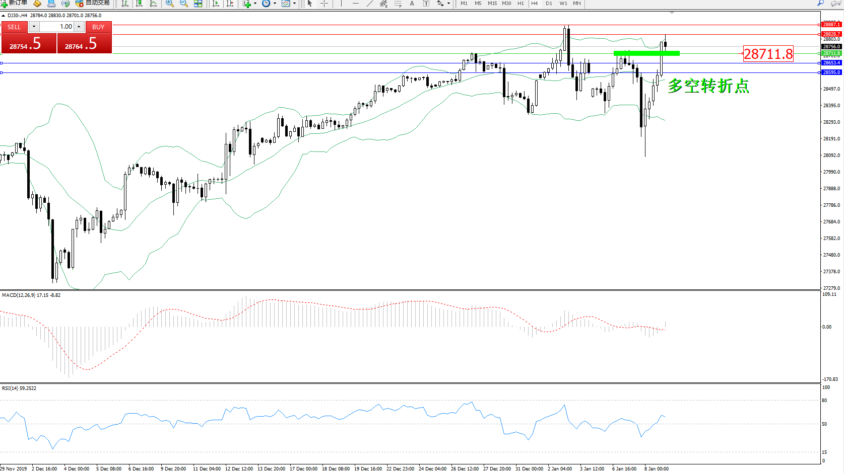 道琼斯指数18日(周三)收盘上涨161.50点,涨幅0.56%,报28745.13点。伊朗报复袭击美国驻伊拉克军事基地而出现波动,但伊朗导弹击中区域没有美国人,美元指数重拾强势;同时美国ADP就业大幅好于预期,此前贸易账数据显示,美国整体贸易逆差在201912月降至201610月以来三年多新低,这显然是美国总统特朗普所乐见的状况。美国总统特朗普称,永远不会允许伊朗获得核武器。伊朗似乎没有进一步行动。袭击中,只造成非常小的损失。将对伊朗施加额外的制裁。