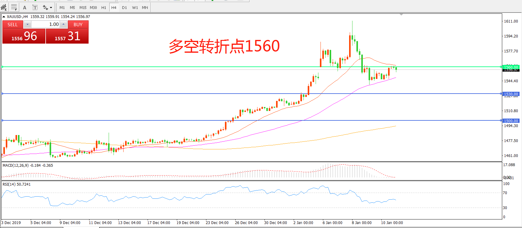 备选策略:在1560.00之下看跌,目标1530.00   1500.00