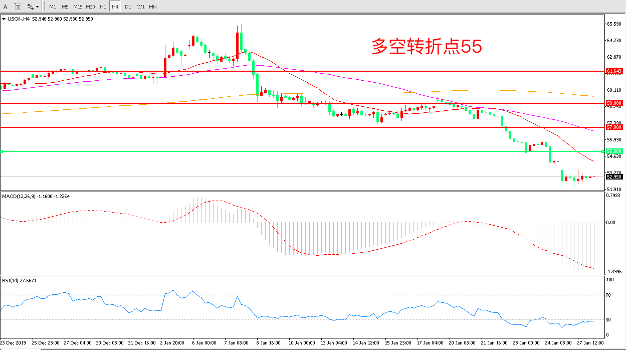交易策略:在55.00之下看跌,目标52.00 49.50