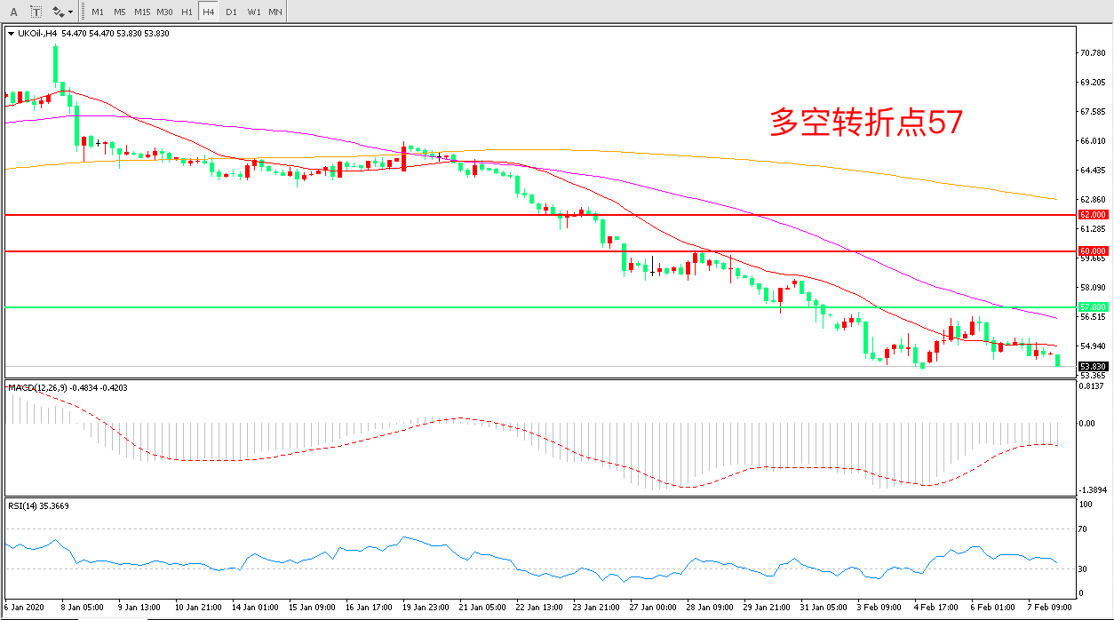 交易策略:在57.00之下看跌,目标55.00 52.00