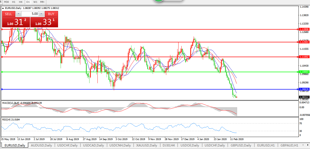 技术面简析:日图均线呈有序空头排列,汇价低位窄幅整理弱势依旧,MACD运行于0轴下方且量能继续放量 ,RSI持续走弱,预计短期汇价将进一步走低。