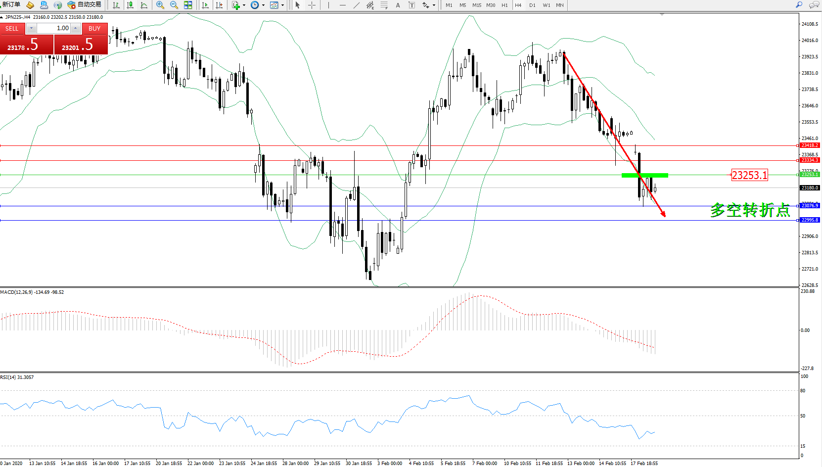 日经225指数218日(周二)收盘下跌343.24点,跌幅1.46%,报23180.00点。日内亚洲股市纷纷下跌,其中日韩股指跌幅较大,投资者对公共卫生事件冲击经济的担忧情绪并未消散,多数经济学家预计卫生风险将把日本推向衰退,日本限制半导体3种核心材料对韩出口已经8个月,韩国产业通商资源部17日在青瓦台进行工作报告时表示,将力争实现材料、零部件和设备的自给自足,在今年内完全消除日本限制出口3种材料所带来的供应紧张。