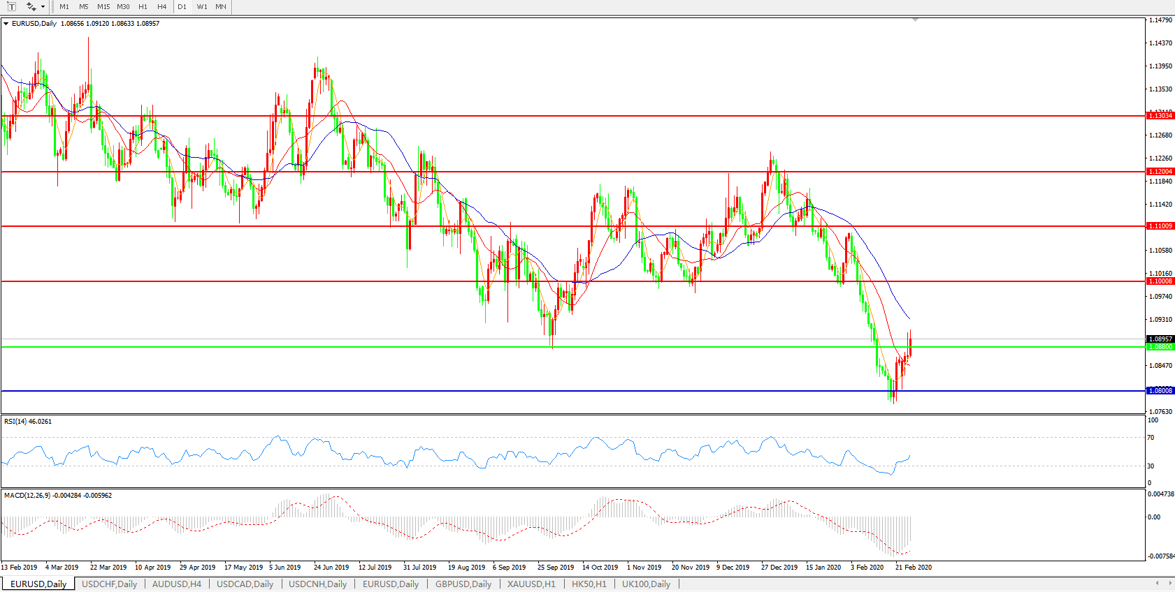 欧元兑美元在周三欧洲时段盘初一度加速反弹,但最终止步于1.09关口,在此前欧元汇价受美元指数回落而脱离近三年低位连续数日反弹后,汇市再度走到十字路口,欧元区在公共卫生风波中受到更多冲击的这一状况,令其涨势面临难以为继,而美债收益率日内脱离历史低位回升之状况,也助推了美元指数企稳;分析师指出,在上攻1.09关口失利后,欧元兑美元在进一步消息面事件低碳钢助推下仍有下行挑战1.0778前低的可能。日内全球性公共卫生危机进一步发酵,受影响国从意大利扩散至周边多国,对于本已陷于经济困境中的欧元区而言,这是额外的负面事件拖累,年初以来的下行趋势,因而仍将延续相当一段时间。