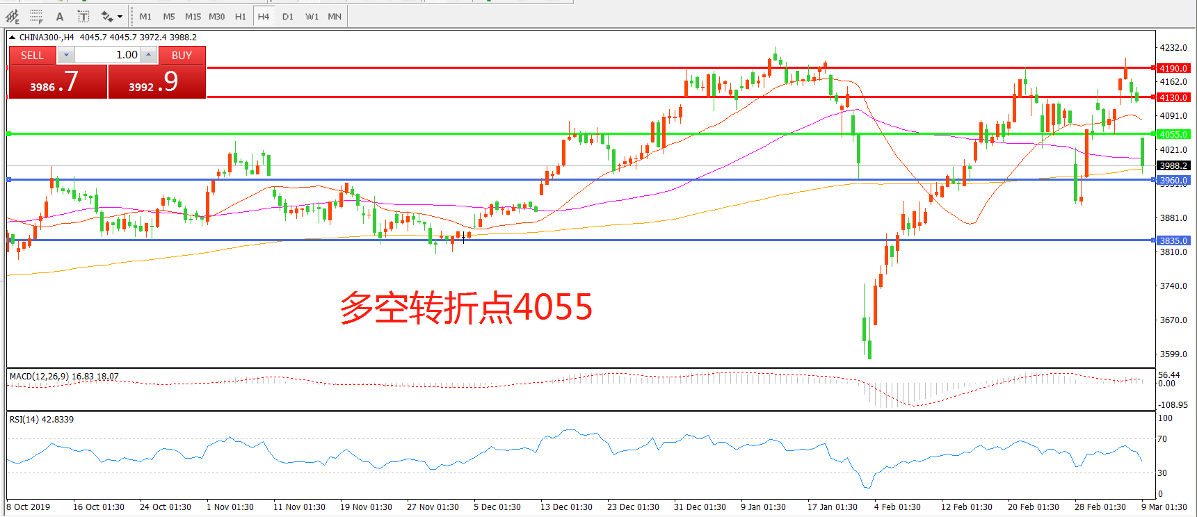 多空转折点:4055.00