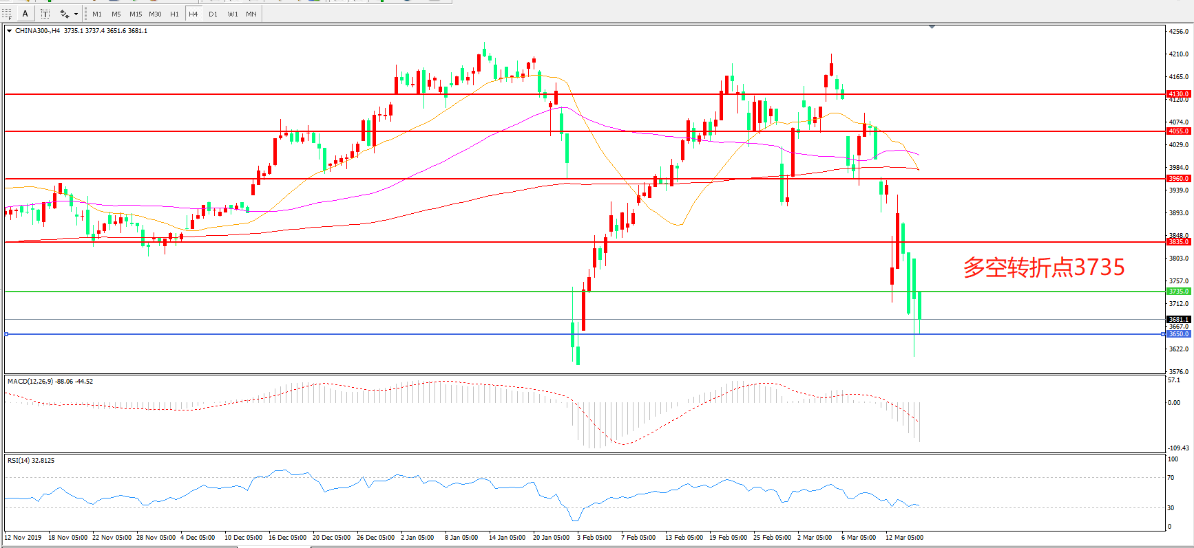沪深300 CHINA 300 4小时图