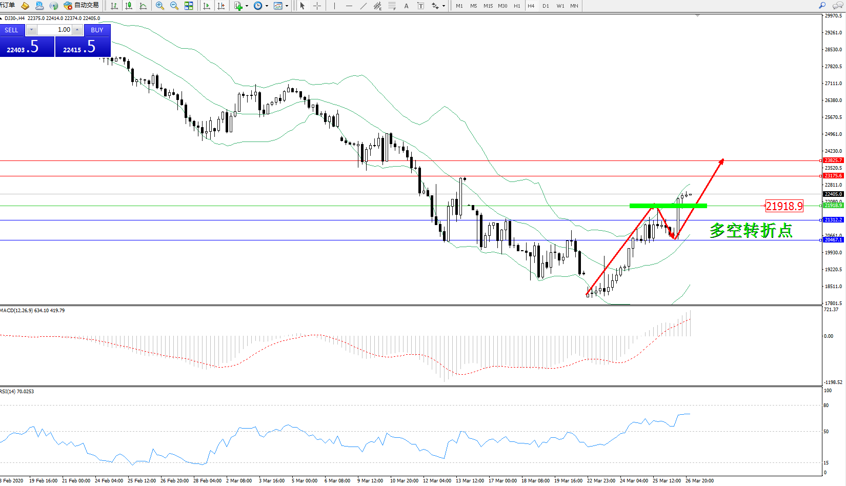 道琼斯指数3月26日(周四)收盘上涨1351.60点,涨幅6.38%,报22552.17点。美国股市再度上涨,因投资者推测国会即将通过的2万亿美元救助计划将缓和冠状病毒大流行对经济的冲击。道琼斯工业平均指数创下1931年以来最大三日涨幅,目前较3月23日的低点高出21%,得益于波音公司的又一次大幅上涨。上周首次申领失业救济人数激增至创纪录的328万人,因很多企业为了防疫而关门;尽管数字超出预期,但美国政府的帮助弥补了对工人和企业的损害。因遏制冠状病毒疫情蔓延的严格措施令美国经济活动陷入停止状态,引发一波裁员潮,这可能终结美国历史上持续时间最长的就业热潮。美联储主席鲍威尔还试图向公众保证,中央银行应对危机不会弹尽粮绝。