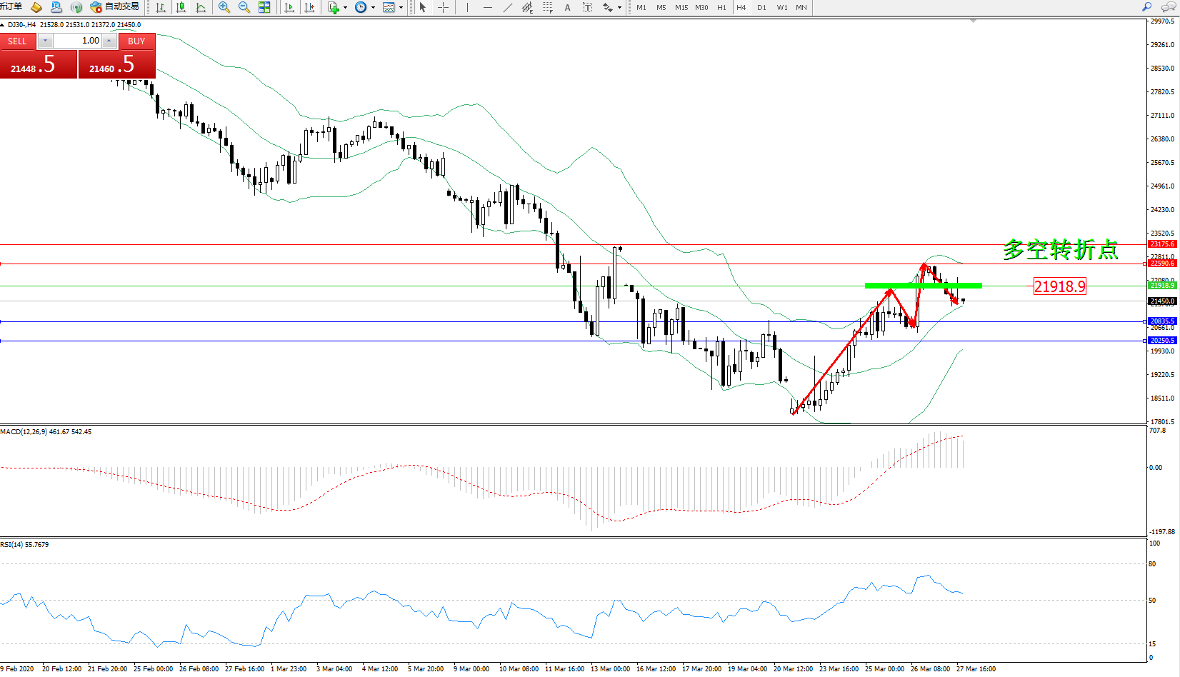 道琼斯指数3月27日(周五)收盘下跌915.40点,跌幅4.06%,报21636.78点。美股再度大跌,美元指数大跌逾1%,本周更是重挫400点,投资者预期美联储采取更多行动,同时本周美元的流动性有所缓解。备受关注的2万亿美元财政刺激计划在美国国会众议院通过口头表决后,美国总统特朗普随后第一时间签署了这一计划,使其成为法律。众议院院长佩洛西最新表态称,这份2万亿美元的财政救济法案绝不会是最后一份应对疫情的法案,后续的重点会放在力度更大的现金补贴政策、扩大家庭病假资格以及为各州提供更多拨款。