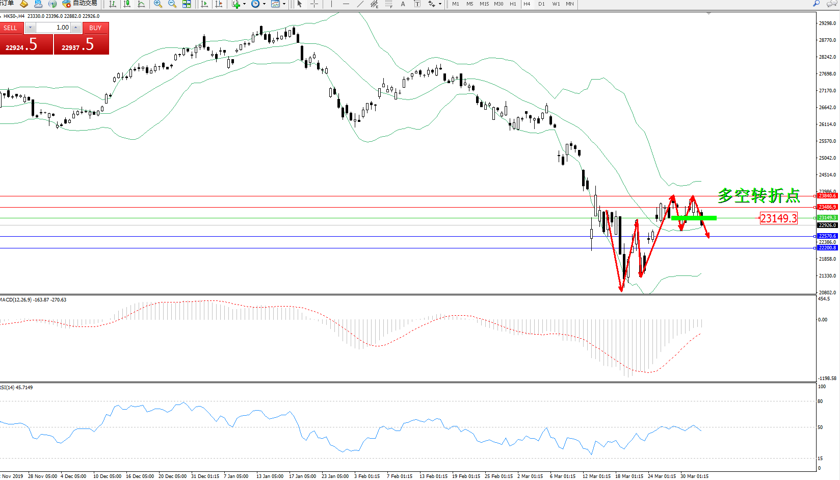 香港恒生指数41日(周三)收盘下跌517.69点,跌幅2.19%,报23085.79点;港股市场下跌明显,主要股指盘中均大跌近3%。上午盘弱势震荡,午后受外围市场下跌影响,现单边急跌行情。海外疫情持续严峻,依旧影响金融市场走向,市场信心十分脆弱。新冠肺炎疫情依旧在全球恶化,冲击全球经济,目前累计确诊数据已超86万。全球资本市场正快速走低,美股续挫,道指初步收跌近千点。航空股、在美上市英国银行股跌势惨重。欧洲股指期货也进一步下跌,日本股市收跌4.5%。为应对疫情,英国金融监管部门施压,大银行纷纷停止分红,汇丰也包括在内,道指汇丰控股大跌近10%,拖累恒指跌超200点,主板成交量为1312.3亿港元,港股通净流入40.03亿港元。腾讯、恒生银行、中石化、工商银行等全线下挫;比亚迪股份跌超6%领跌国指。恒生指数有限公司将于2020515(星期五)宣布2020年第一季度之恒生指数系列检讨结果。恒生指数系列的成份股变动将于202068(星期一)生效。