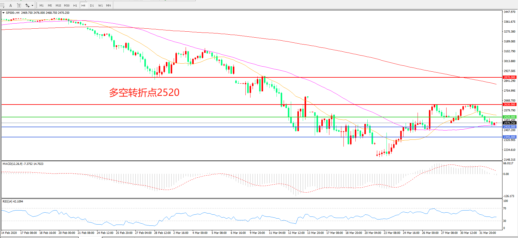 周二(4月1日)美国冠状病毒确诊超20万例,美国总统特朗普警告称未来两周将“非常艰难”,市场担心疫情蔓延造成的经济停滞时间可能比预期更长,标普500震荡回落,收报2470.75点。多位华尔街大佬预计美股暴跌远未结束。