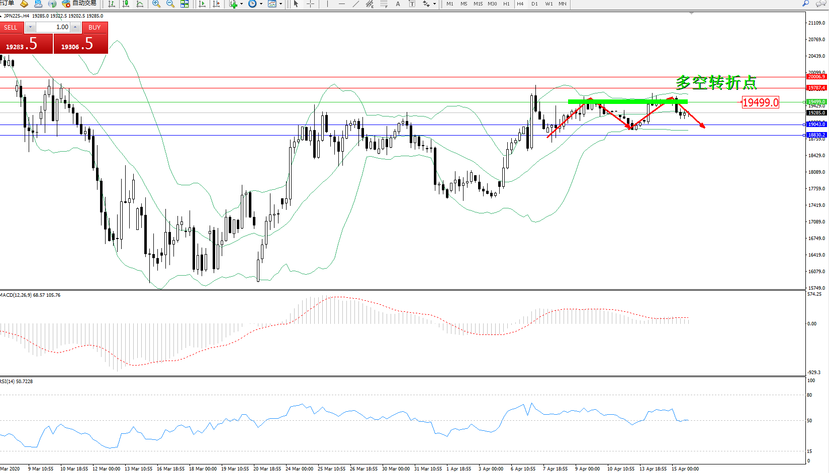 日经225指数4月15日(周三)收盘下跌107.31点,跌幅0.55%,报19531.50点。日本厚生劳动省聚集性病例对策小组4月15日发布推算数据称,若不采取任何防止感染新型冠状病毒的措施,到疫情流行结束为止日本国内将有约85万人陷入危重状态。其中,相当于近半数的约42万人将死亡。目前日本政府已经发布紧急事态宣言,采取了要求避免外出、关闭部分公共设施等应对措施,因此实际将不会有这么多人死亡,公布该数据的目的旨在敲响警钟。