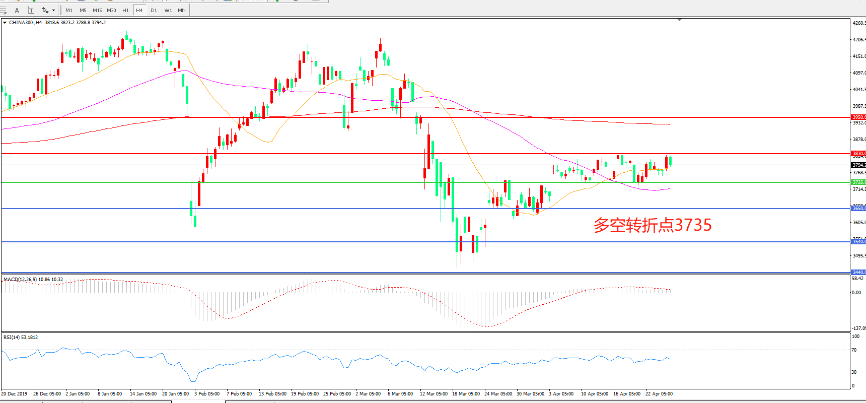 沪深300  CHINA 300   4小时图