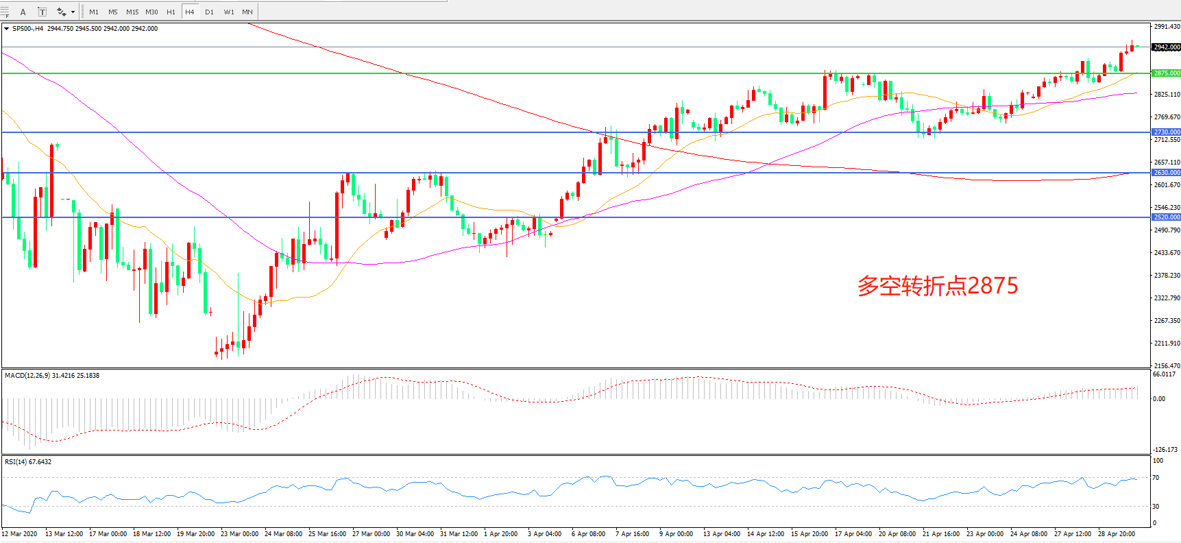 周三(4月29日),虽然美国一季度GDP增长遭遇后金融危机时代最大下滑,但吉利德科学药物试验进展让投资者看到了战胜新冠肺炎的希望,标普500指数大涨2.66%,报2946.25点。此外美联储还布了4月份货币政策声明,承诺将继续积极的政策立场,同时呼吁加码财政支持。