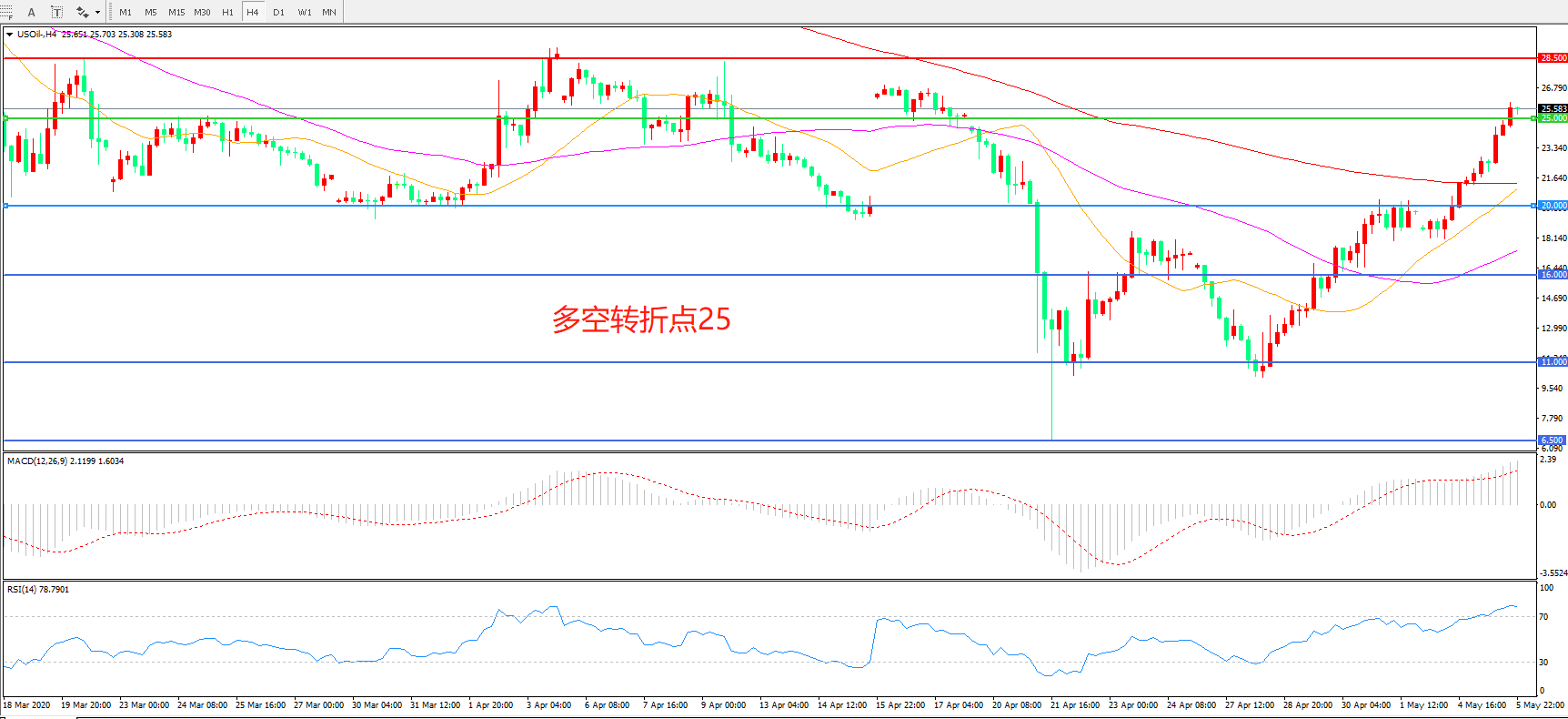 周二(5月5日),美国WTI原油一路高歌猛进,全天持续走高,以20%以上的涨幅实现了九个多月来最长连涨日,随着美国一些州、以及意大利、西班牙、葡萄牙、印度与泰国等一些国家开始允许复工,燃料需求前景有所改善,油价可能已经度过疫情之后的至暗时刻。