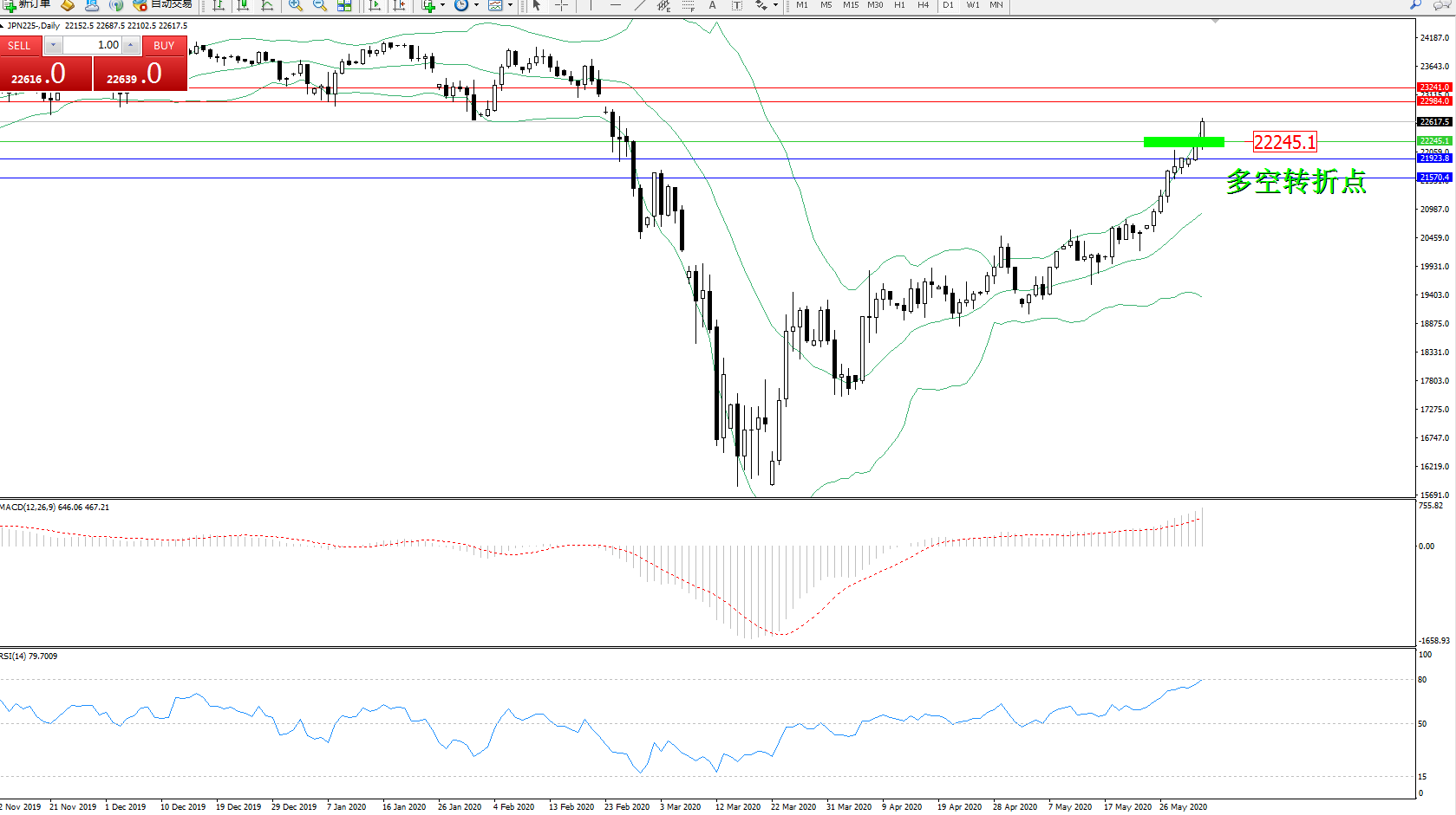 日经225指数6月2日(周二)收盘上涨278.50点,涨幅1.26%,报22333.50点。新冠疫情对日本造成了自全球金融危机以来的最大冲击。政府尚未计划发行“新冠病毒债券”或其他特别债券来支付抗击疫情的费用。预计日本2020年实际GDP将萎缩6.5%。预计日本2021年的经济增速将反弹2.7%,但总体经济产出仍将比新冠疫情暴发前的基线低5%左右。日本外相茂木敏充:韩国将要求世贸组织成立一个小组,以调查有关日本对芯片和显示器制造中所使用的三种关键材料施加出口限制的问题。尽管韩国已就改善出口体系做出努力,但与日本的商议仍未取得进展。