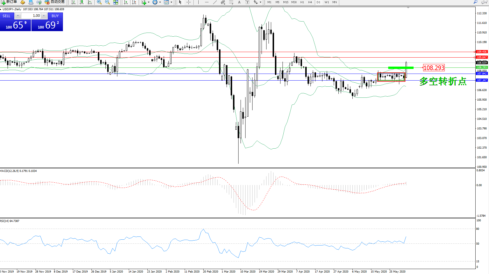 多空转折点:108.293