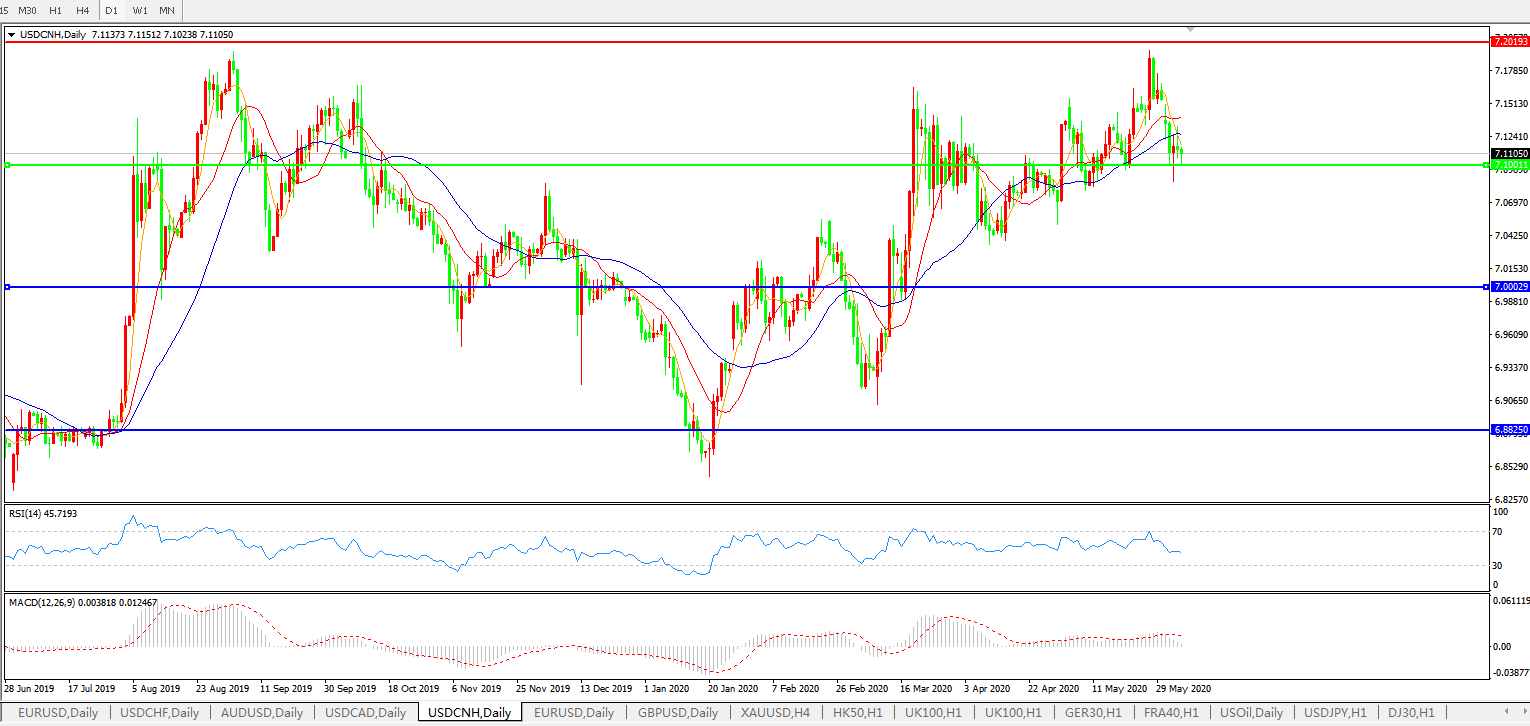交易策略: 在7.1000之上,看涨,目标价位为7.2000,然后为7.3000。