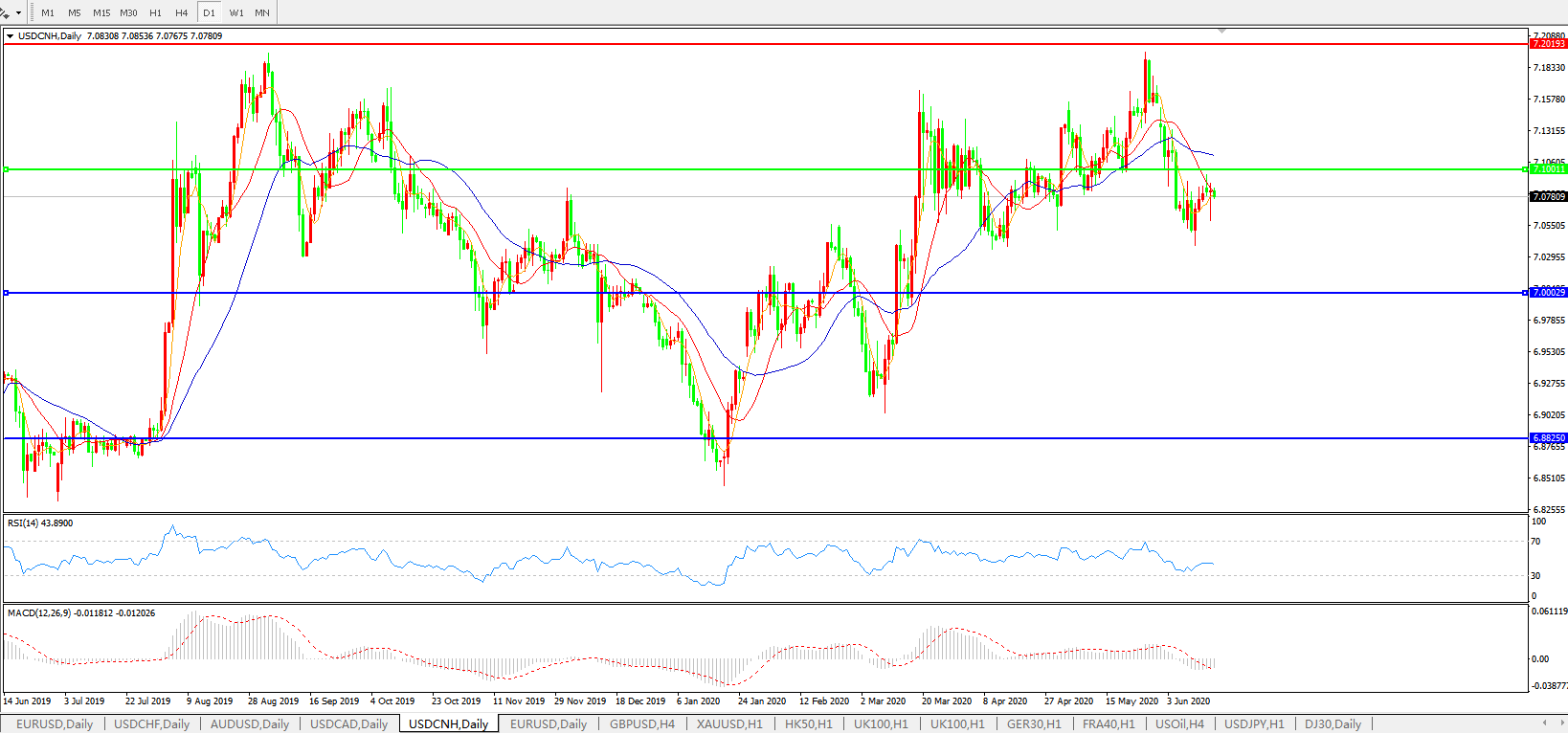 美元兑人民币USDCNH 日线图: