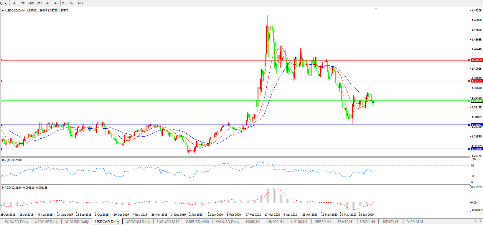 美元兑加元USDCAD 日线图:
