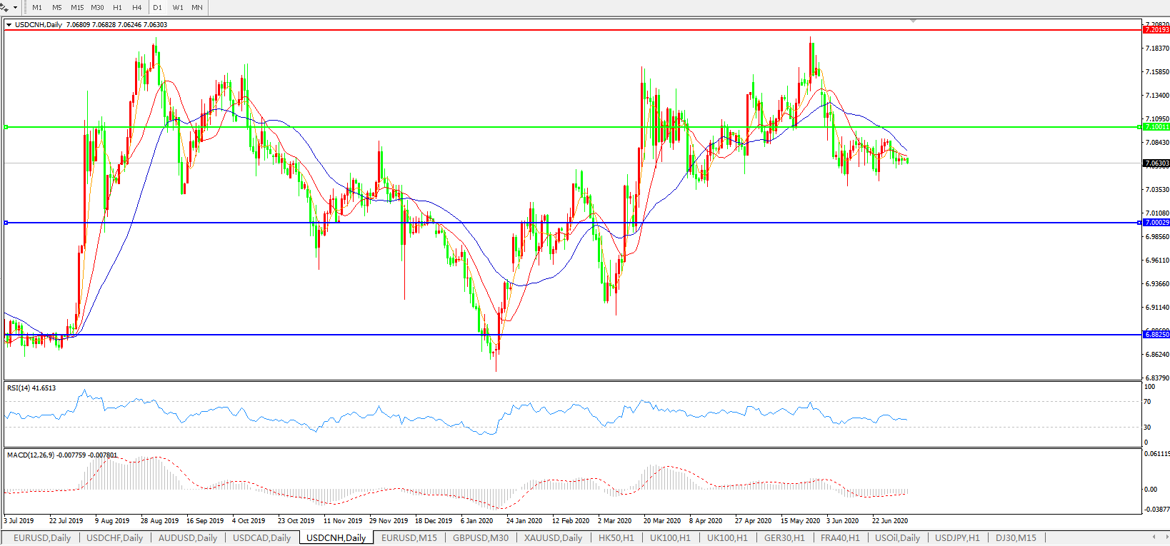 美元兑人民币USDCNH 日线图: