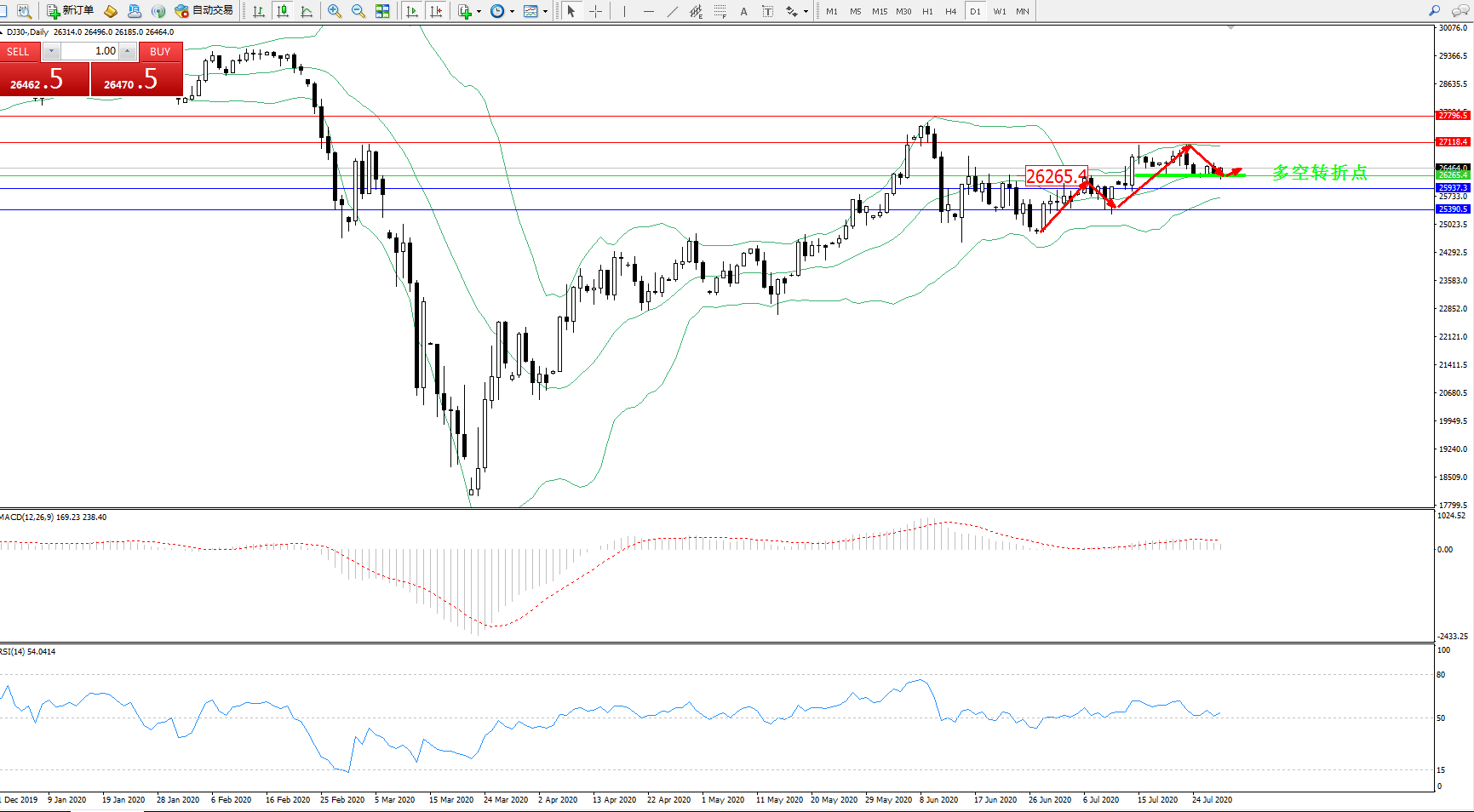 道琼斯指数7月29日(周三)收盘上涨160.30点,涨幅0.61%,报26539.57点。美联储将基准利率维持在0%-0.25%不变,符合市场预期。委员们一致同意此次的利率决定。(与上次会议一致),病毒构成相当大的风险。将贴现利率维持在0.25%不变。延长央行回购和掉期额度至明年3月31日。将维持利率在当前水平,直到美联储确信经济已经度过了最近的危机,并走上实现最大就业和价格稳定目标的轨道。经济发展路径取决于病毒发展。经济活动和就业岗位上升,但仍低于此前的水平。将使用所有工具支撑经济。需求疲软,低油价使通胀低企。将“以当前的速度”增加资产规模(资产购买)。金融状况改善,部分原因在于美联储的行动。