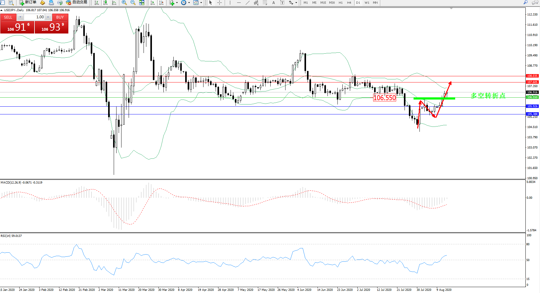 美元兑日元接近持平,报106.93,由于美国国债收益率上升,美元兑日元反弹。日元一度受益于避险情绪的升温,但在全球疫苗不断传来好消息的背景下,日元依旧弱势,美国就业方面数据也整体向好,日元可能进一步承压。美元指数承压,美国大选逐渐成为焦点,在民主党候选人拜登提名了副手人选之后,美国大选的决战阶段正式起跑,对于选情的疑虑和对未来政策走向的猜疑。也带动美元有所承压,尤其在美国朝野就援助计划仍然缺乏共识的背景下。