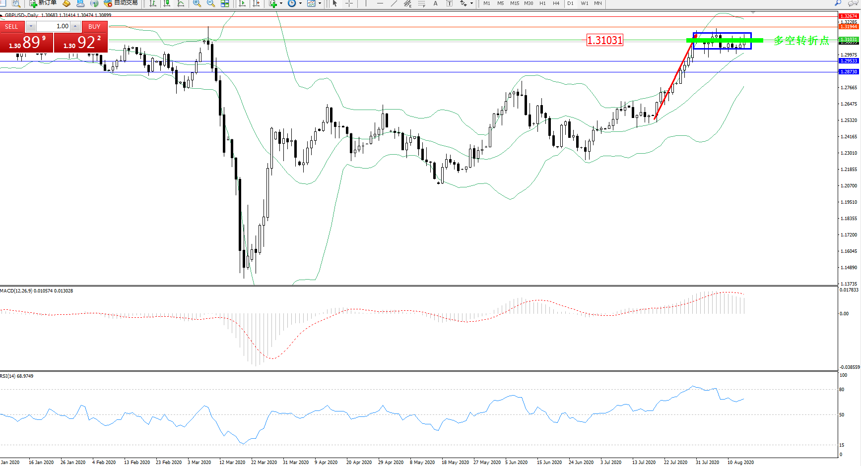 备选策略:1.31031上方看涨,目标1.31944、1.32674