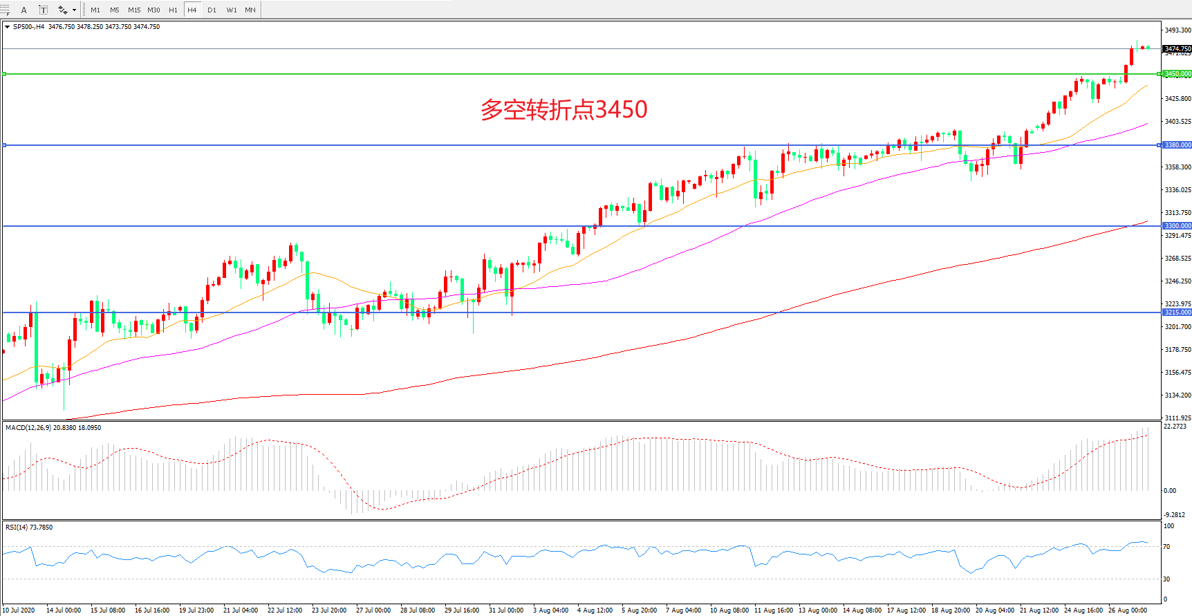 交易策略:在3450.00之上看涨,目标3530.00         3600.00