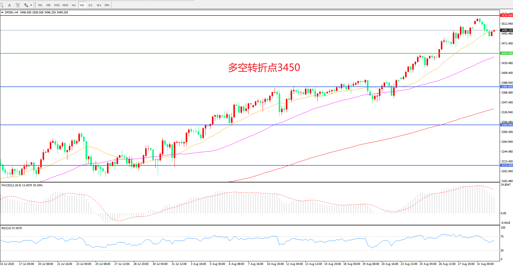 多空转折点:3450.00