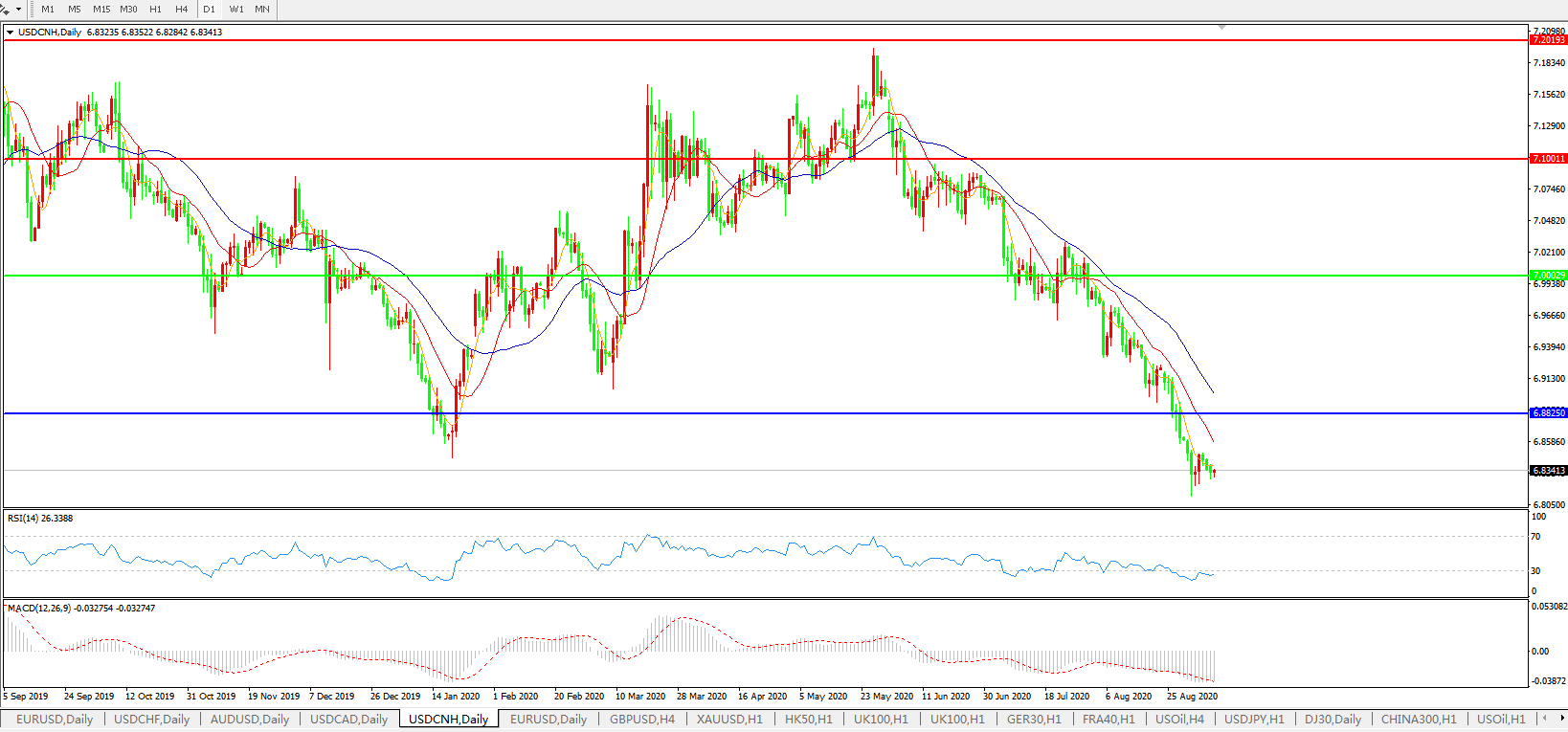 美元兑人民币USDCNH 日线图: