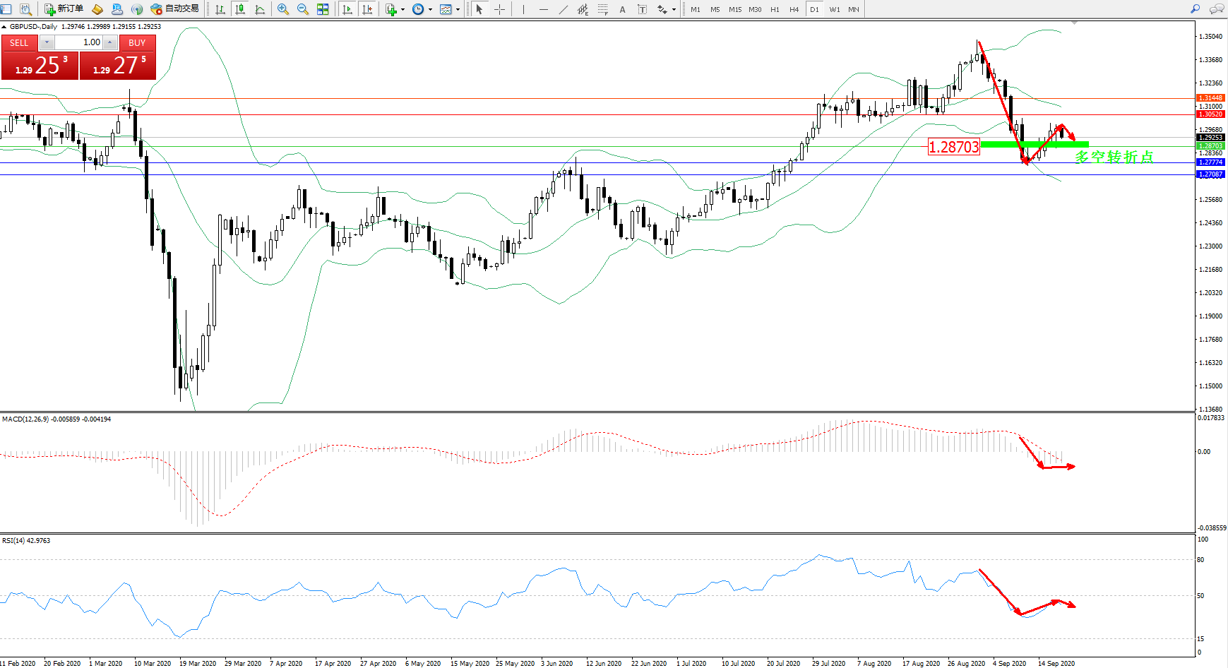 交易策略:1.28703上方看涨,目标1.30520、1.31448