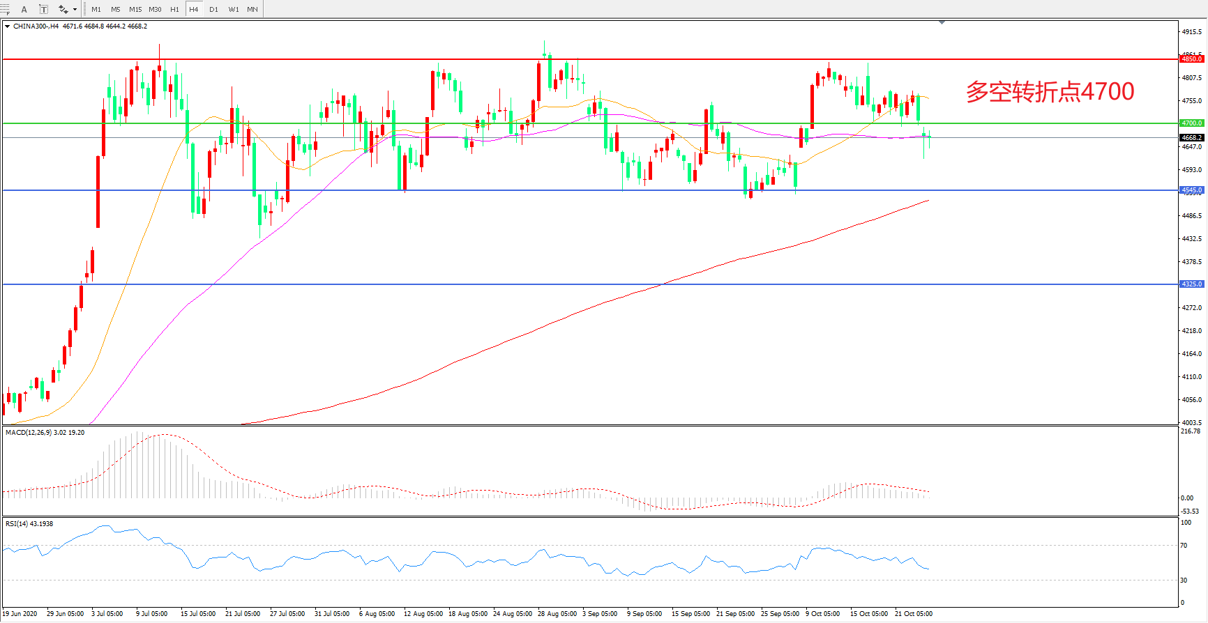 交易策略:在4700.00之下看跌,目标4545.00 4325.00