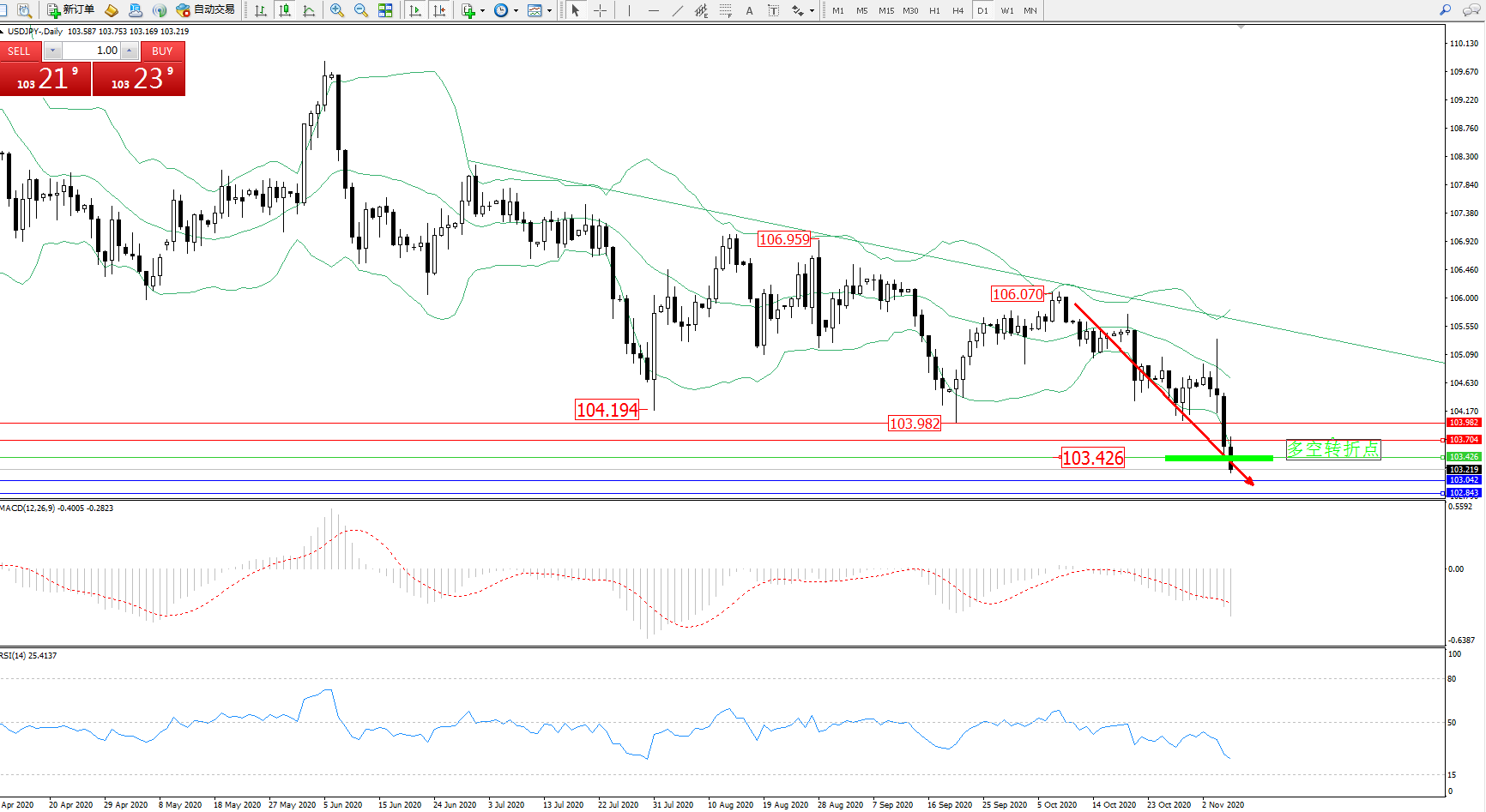 美元兑日元下跌0.14%至103.35;稍早一度下跌0.3%,接近3月12日低点103.09的情况下,交易员称一些投机账户在周末前削减空头头寸。美国劳工部发布10月非农就业报告,失业率连续六个月下降;新增就业人数好于预期,但不及前值,增幅连续四个月下降。美元兑日元在周五全天延续隔夜以来颓势,一度再度刷新3月份以来八个月新低103.35,此后也并未录得更多像样的反弹。美国选情的困局,连同欧洲疫情的继续,仍在推动全球避险情绪升温,这使得资金流向亚太市场的趋势也在继续。不光是日元,亚系新兴市场货币隔夜以来也纷纷创出了相当一段时间以来的新高;美国大选的不安,连同欧洲疫情的继续,仍在推动全球避险情绪升温,这使得资金流向亚太市场的趋势也在继续。而美国政局的不确定性也使得下一步财政刺激计划继续难产,对美国指数构成长期利空。并且,在英国央行和欧洲央行都已经有了明确的强化宽松计划,美联储如无意外也会考虑跟进,但日本央行却已经黔驴技穷的大背景下,日元汇价更加升值的前景,同样不可避免。