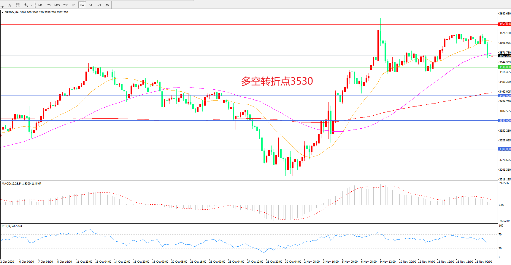 周三(11月18日),辉瑞疫苗又传利好,增添了市场对今年内疫苗正式获批可用的信心,但新的防疫措施加剧了市场对经济复苏受影响的担忧,美股盘中转跌,标普500震荡下行,收报3564点。科技股大多下跌,FAANMG六大科技股中仅涨逾0.2%的奈飞收涨