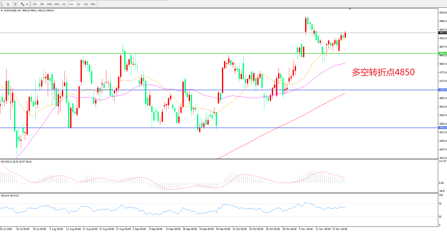 交易策略:在4850.00之上看涨,目标5000.00       5150.00