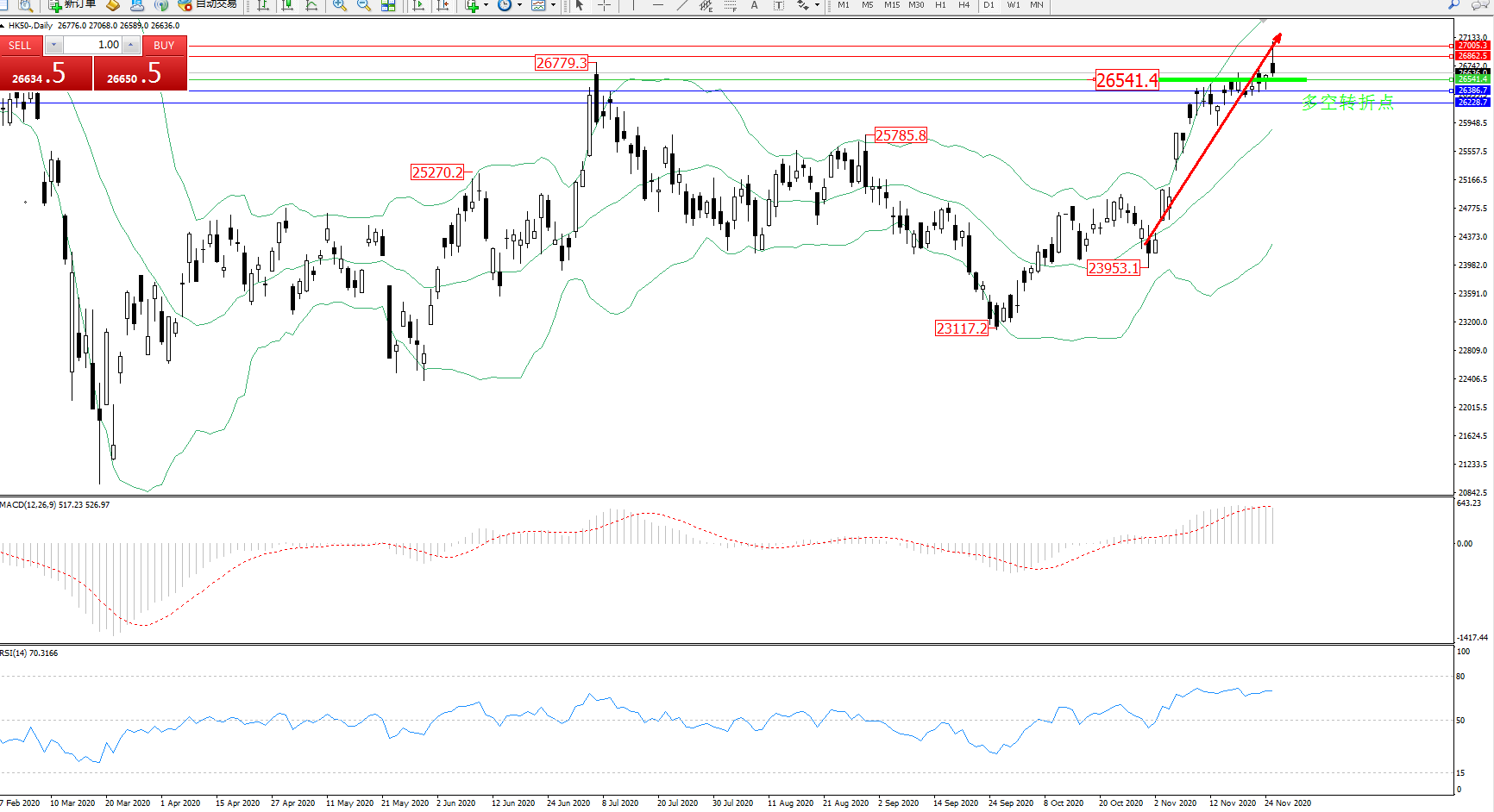 交易策略:26541上方看涨,目标26862、27005